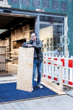Die Flut war und ist für alle um Lange herum ein Grund zum Wüten, Trauern, Wehklagen. Hat auch Lange gemacht. Zu fast 100 Prozent ist die Euskirchener Innenstadt im vergangenen Sommer zerstört worden. Von den 200 Geschäften wurde jedes einzelne ruiniert. Bimssteine, Backsteine, Beton, keine Oberfläche, die nicht unheilgetränkt ist, nicht eine Kellerwand, die sich nicht vollgesogen hat. Doch auf den Schock folgte bei Lange sofort der Wunsch nach Wiederaufbau. „Ich wollte den Menschen zeigen, dass es eine Zeit nach der Katastrophe gibt“, sagt der gebürtige Euskirchener.